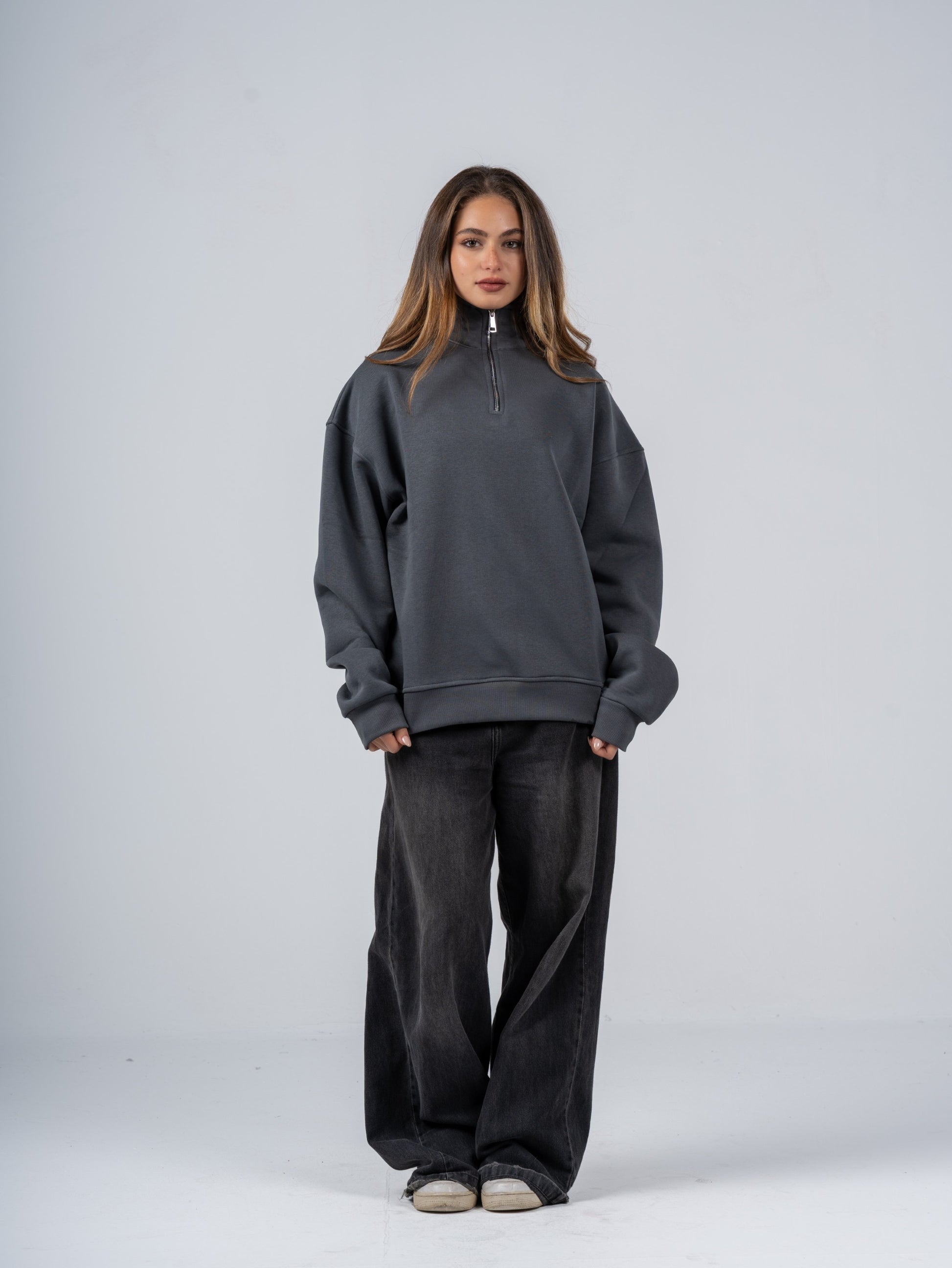 CHARCOAL QUARTER-ZIP SWEATSHIRT